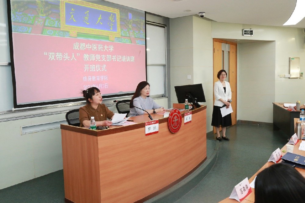 6月3日,成都中医药大学“双带头人”教师党支部书记培训班在上海交通大学长宁校区顺利开班。成都中医药大学党建办公室主任、党委组织部副部长罗萍,上海交通大学终身教育学院副院长项玉出席本次开班仪式。成都中医药大学共51人参加此次培训。
